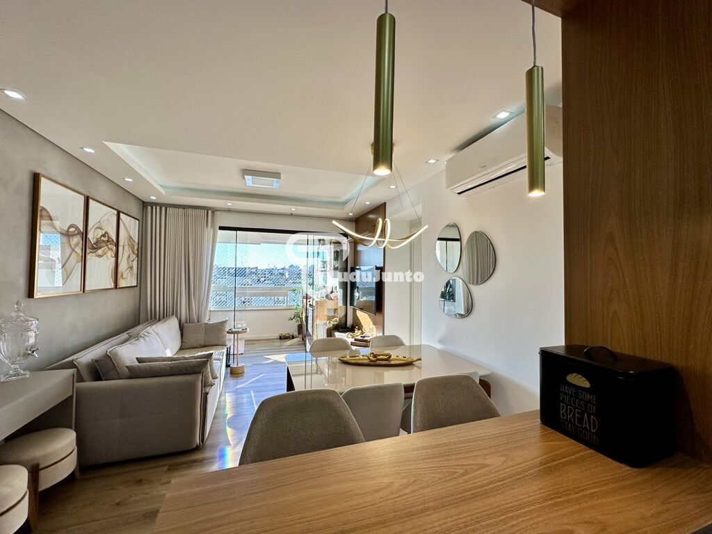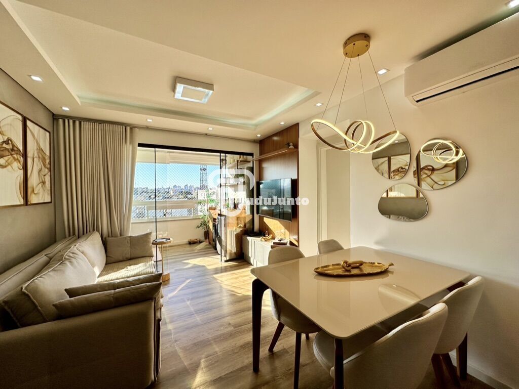 Lindo apartamento com 03 quartos, sendo 01 suíte, sala de estar, sala de jantar, cozinha, área de serviços, sacada com churrasqueira fechada com sistema reiki, banheiro social, móveis planejados modernos e de alta qualidade, ar condicionado split na sala e dormitórios, piso vinílico em todo o imóvel, proporcionando conforto.