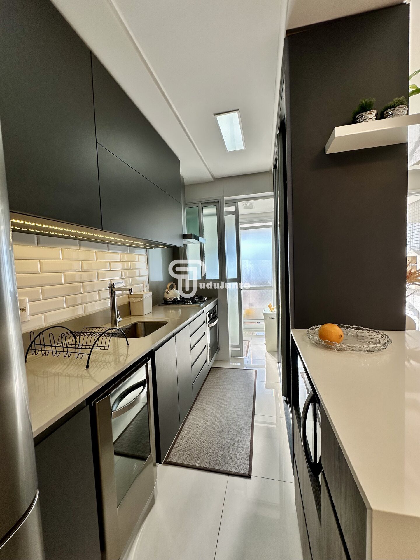São 03 quartos, sendo 01 suíte, 01 banheiro social, sala ampla com 2 ambientes, sacada com churrasqueira a carvão, lavanderia com acesso à sacada, 02 vagas de garagem cobertas e 01 hobby box.