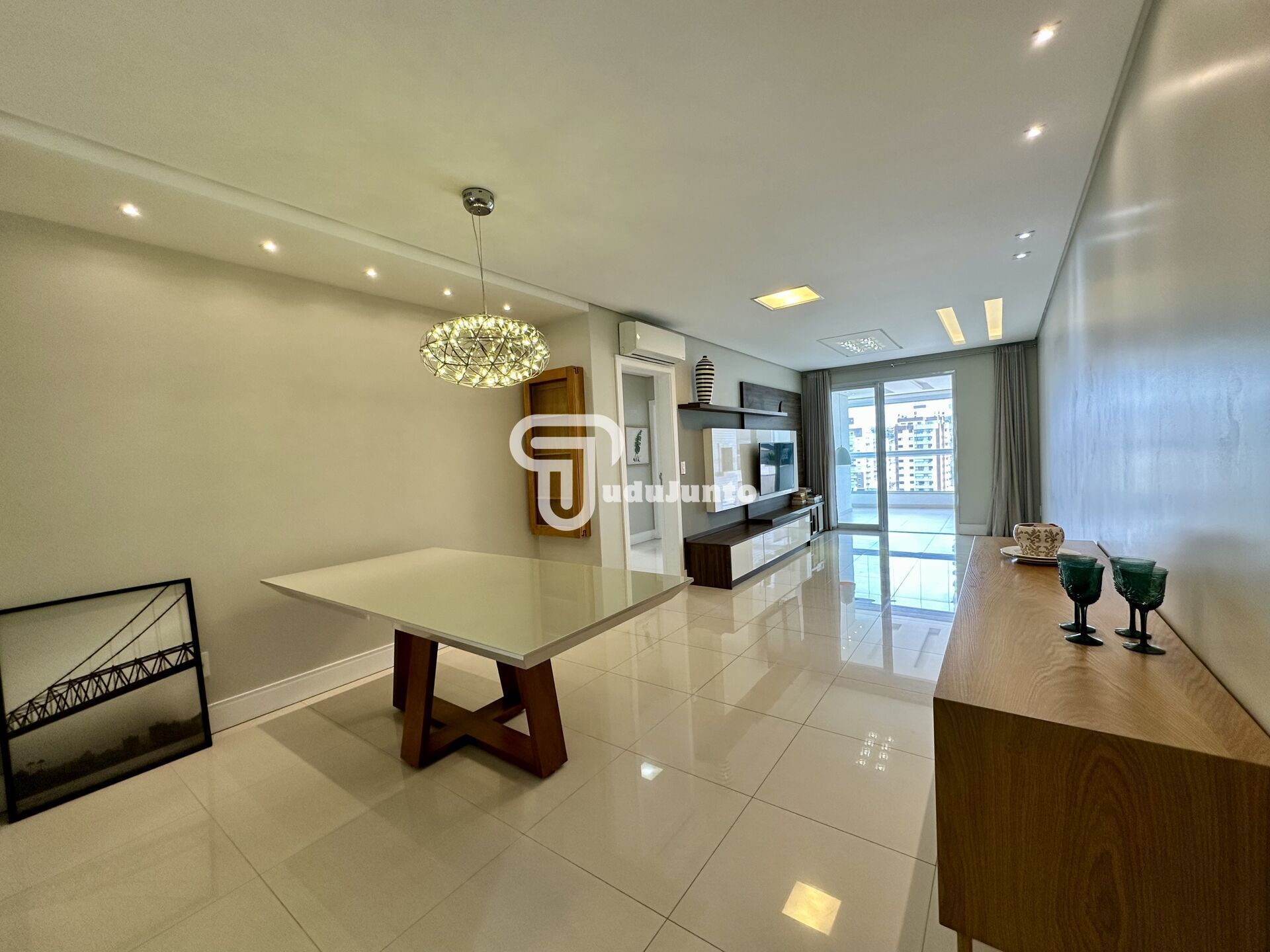 São 115m privativos, com 03 quartos, sendo 02 suítes, 01 banheiro social, espaço home office, ampla sala com 2 ambientes, sacada com churrasqueira a carvão, cozinha ampla com área de serviços, 02 vagas de garagem cobertas e 01 hobby box.