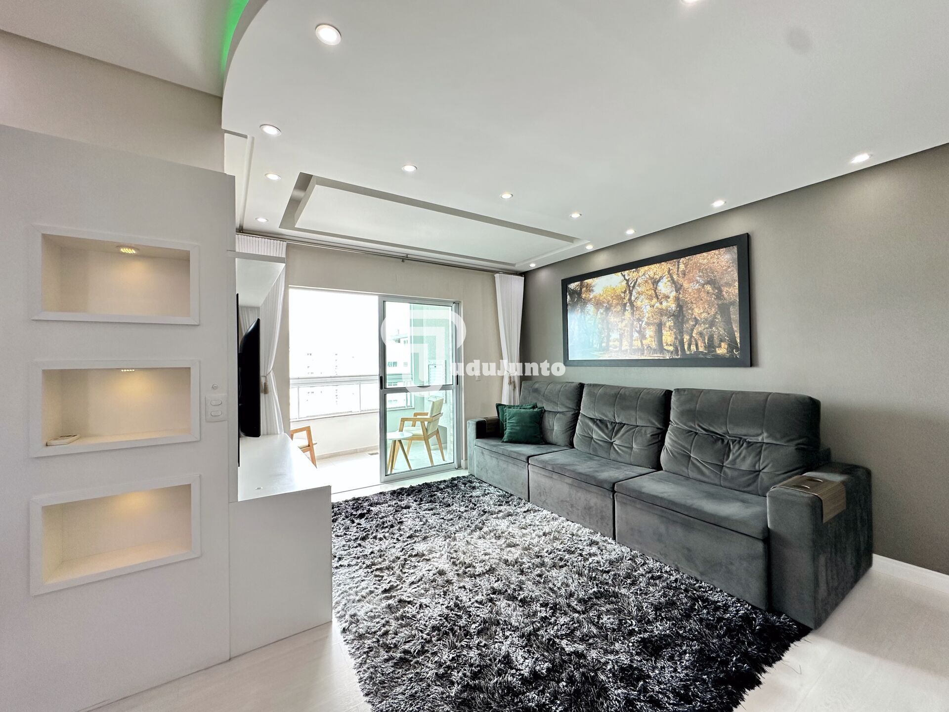 São 102,65m muito bem distribuídos, 03 quartos sendo 01 suíte com sacada, banheiro social, ampla sala de estar e jantar integradas com a cozinha, área de serviços, sacada com churrasqueira com uma linda vista, 02 vagas de garagem e hobby box.