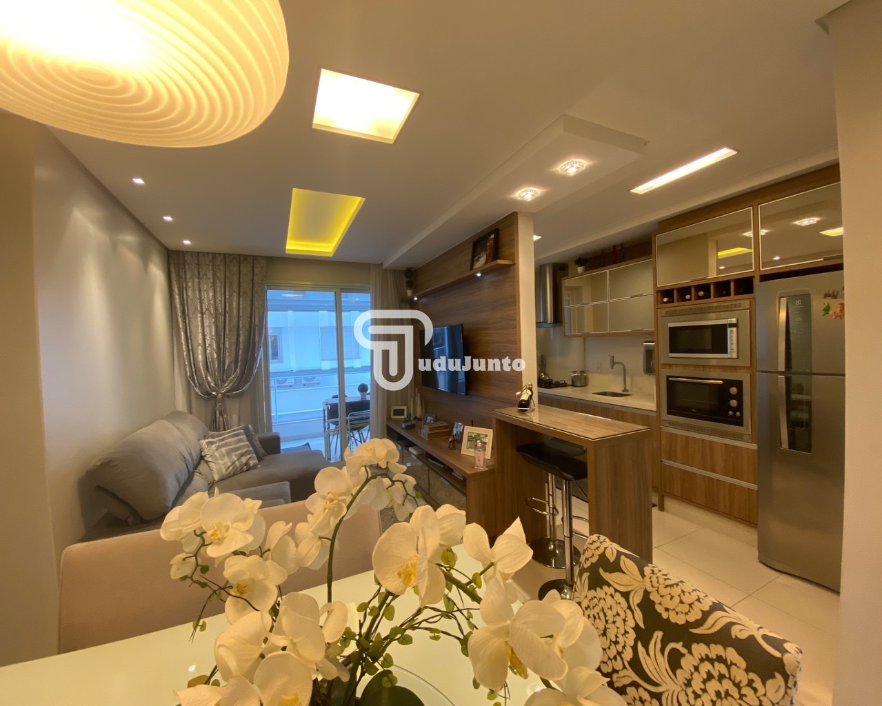 Sala com 02 ambientes conjugados com a cozinha