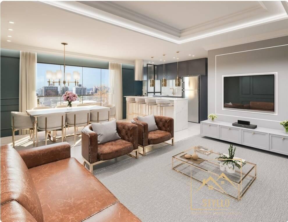 Cômodos: Sacada, Sacada com churrasqueira, Área de Serviço, Dormitórios, Sala/Cozinha conceito aberto, Suíte.