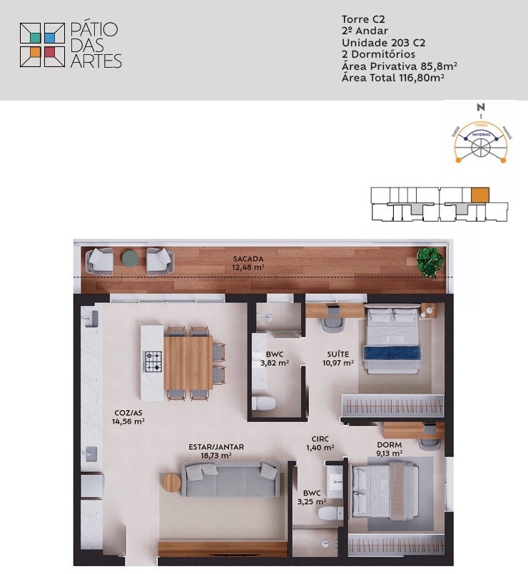 O lazer é um capítulo à parte, pensado para contemplar todas as idades e estilos. Relaxe no espelho dágua ou na piscina aquecida, inspire-se no Espaço Zen e ainda conte com piscina infantil, playground e brinquedoteca para as crianças. As opções de entretenimento continuam com cinema, salão de festas e churrasqueira, enquanto quem busca foco encontra coworking, sala de reunião e sala de ferramentas. Para os amantes de tecnologia, há recarga de veículos elétricos; para os apaixonados por pets, um pet care dedicado. Tudo isso distribuído em uma área total de 116,80 m² que valoriza cada centímetro.