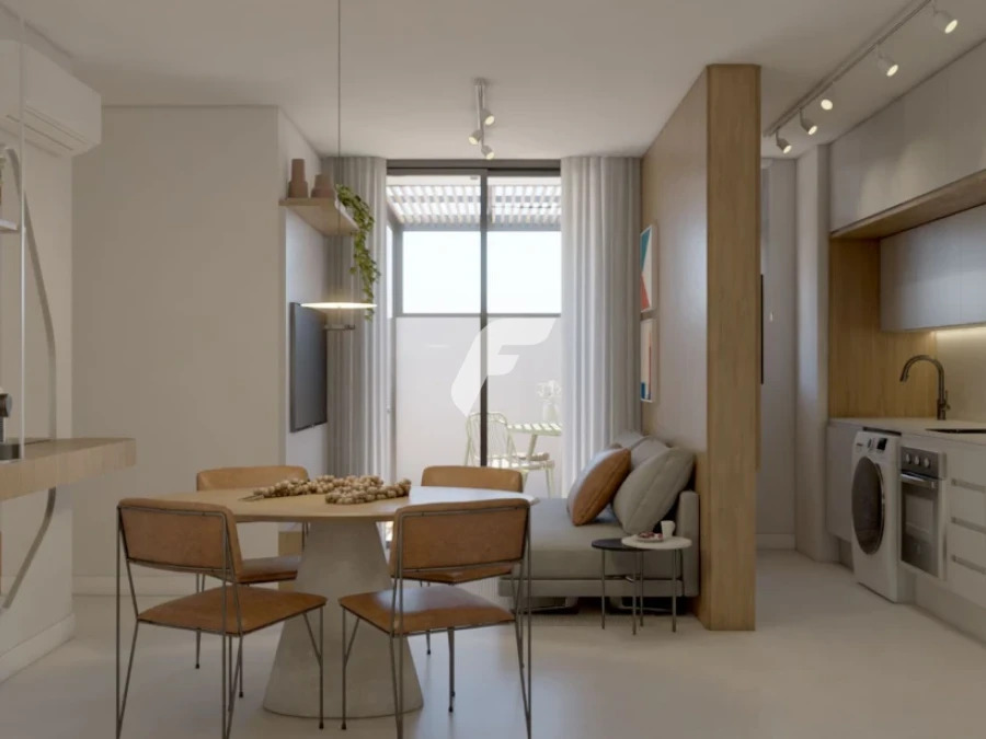 Conceito aberto, sala de estar, jantar, cozinha e lavanderia integradas