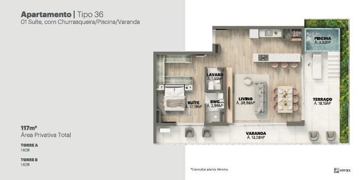Apartamento 1 quarto em Jardim Dourado, Porto Belo com 101,40m² e ampla área privativa. O imóvel possui 1 suíte completa, 2 banheiros e 1 vaga de garagem coberta. Localizado no Edifício Vértice, oferece acabamentos de qualidade e layout funcional para máximo aproveitamento dos espaços.