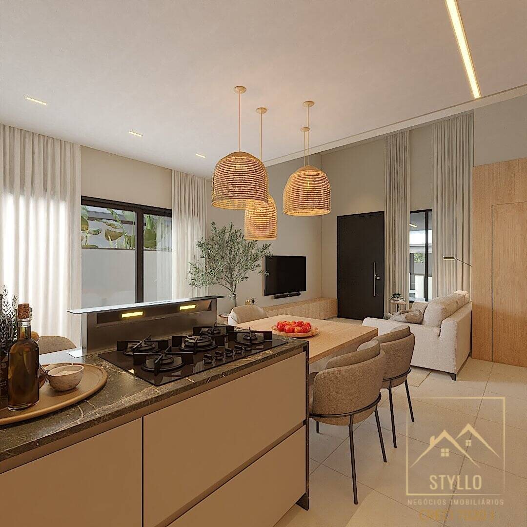 Características: Espaço gourmet com churrasqueira, Fechadura eletrônica, Forro de gesso, Iluminação em led, Murado, Persianas integradas/automatizadas, Quintal, Sala e cozinha com pé direito duplo, Medidores individuais, Portão Eletrônico.
